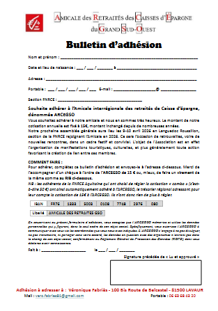 Vous souhaitez adhérer à notre amicale et nous en sommes très heureux. Le montant de notre cotisation annuelle est fixé à 15€, montant inchangé depuis de nombreuses années. En dehors des voyages proposés, une assemblée générale annuelle permet de sacrifier aux obligations statutaires et légales, réunion qui ne dure que deux petites heures.